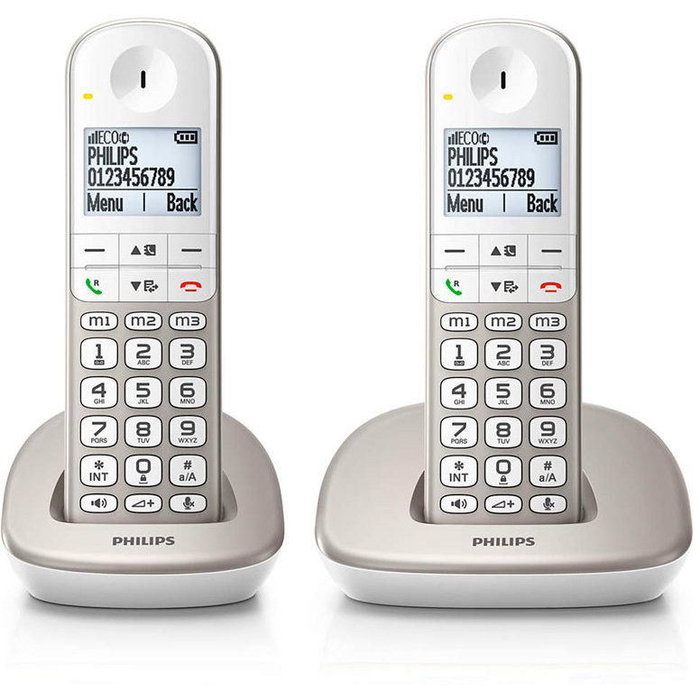 Teléfono inalámbrico Philips Dect Duo con teclas grandes. Diseñado para facilitar el marcado gracias a sus teclas de gran tamaño, este teléfono Philips ofrece comunicación clara y confiable mediante tecnología DECT. Perfecto para el uso doméstico u oficina. Marca: Philips.