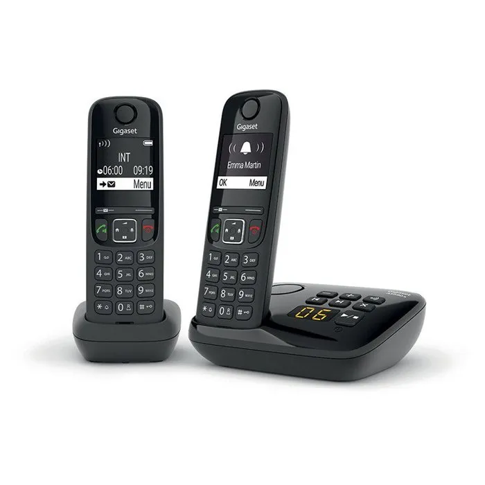 Gigaset Teléfono Fijo AS690 A Duo Negro con Contestador Automático de 20 min y Potente Manos Libres, Pantalla Ultra Legible