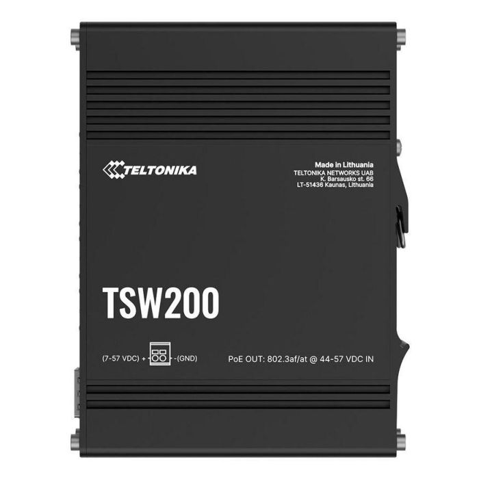 Teltonika Networks TSW200 - Conmutador Ethernet Industrial No Gestionado, 8 Puertos RJ-45 Gigabit, 2 Puertos SFP, PoE+ hasta 30W por Puerto, IP30