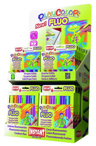 Tempera Instant Solida Playcolor Fluo Expositor De 144 (12 Estuches One 10Gr. De 6 Colores Y 12 Estuches Pocket 5Gr. De 6 Colores)