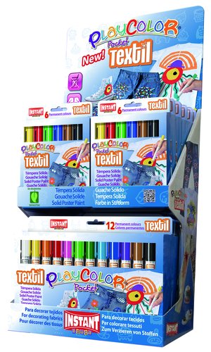 Tempera Instant Solida Playcolor Textil Pocket 5Gr. Expositor De 144 (12 Estuches De 6 Colores Y 6 Estuches De 12 Colores)