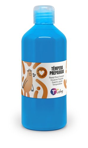Témpera líquida, en base agua, fácil de mezclar en colores brillantes y resistentes a la luz. Fácil lavado con agua y jabón. Botella dosificadora flexible.