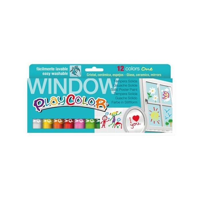 Playcolor Pintura Para Cristales En Barra Estuche 12 Colores Surtidos Lavable Secado Rápido Sin Disolventes