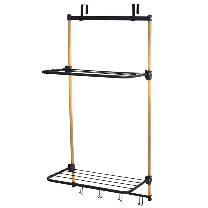 - Con dos ganchos en la parte superior para colgar en la puerta.