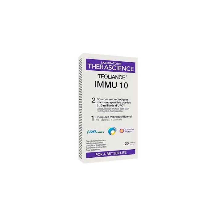 THERASCIENCE Teoliance Immu10 30 Cápsulas Probióticos LGG y BB12, Zinc, Vitamina C y D3 para el Sistema Inmunitario