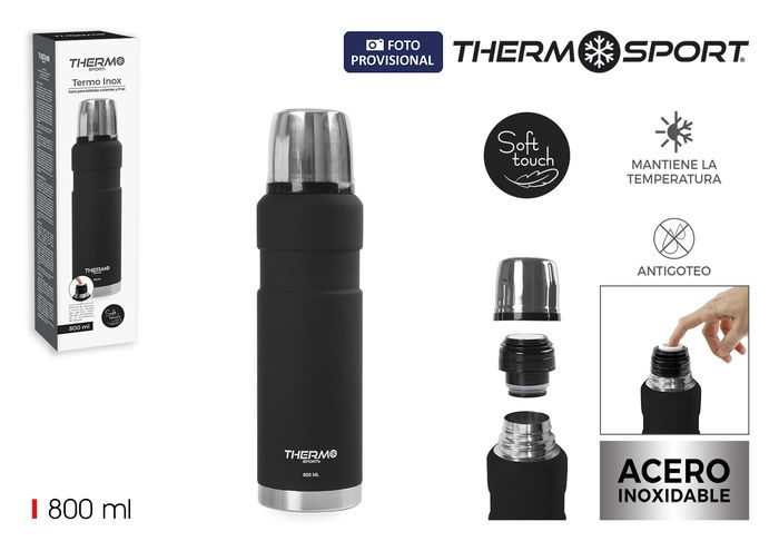 Thermosport Termo Acero Negro 800 ml - 8 cm (Ancho) x 30 cm (Alto) x 8 cm (Largo) (6 Unidades)