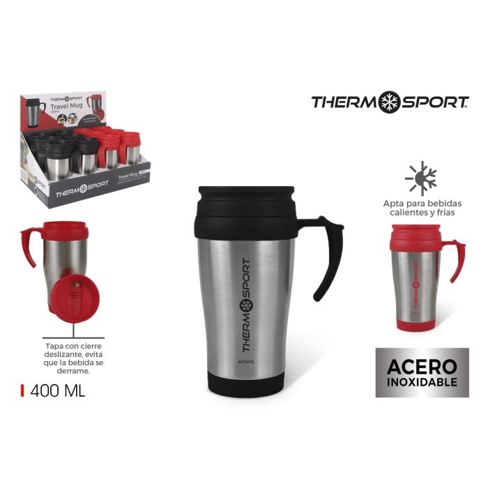 Thermosport Travel Mug 400ml Acero Inoxidable con dimensiones 8 x 17 x 12 cm (12 Unidades)