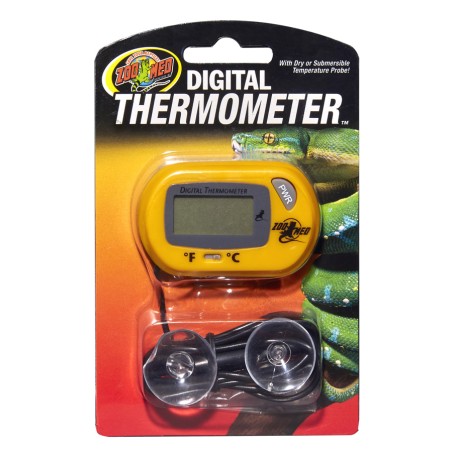 - Termómetro digital que puede ser usado en seco o mojado; ideal para terrarios, acuarios o incubadoras para reptiles.- Rango de temperatura : de -23ºC a 60ºC y -33ºC a 110ºC- Sonda para temperatura de 99cm de largo para máxima precisión.