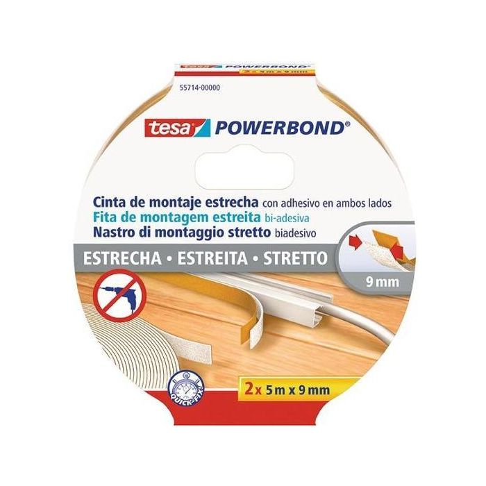 Tesa Cinta Adhesiva De Montaje Doble Cara Powerbond Transparente Estrecha 2 Rollos 9 mm X 5M