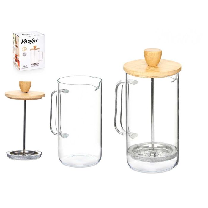 TETERA EMBOLO BOROSILICATO TAPA BAMBU 600ML