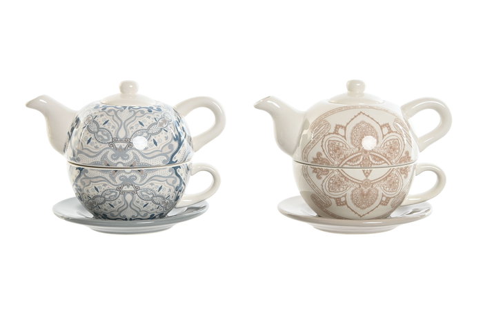 Tetera Indio DKD Home Decor Beige Azul 13 x 15 x 18 cm (2 Unidades)