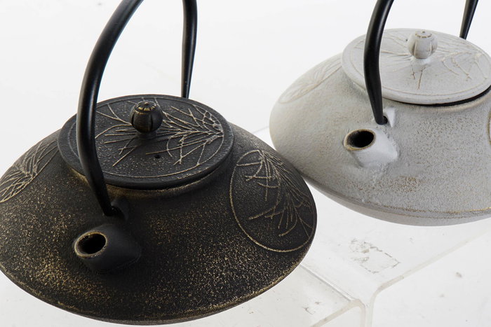 DKD Home Decor Tetera Oriental de Hierro Colado 850ml, Blanco y Negro, Pack 4 Unidades