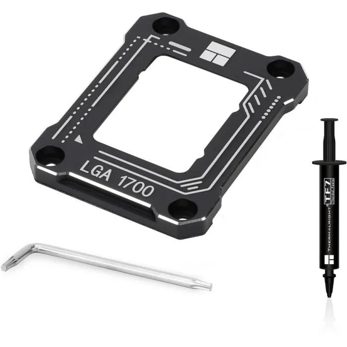 El marco corrector de flexión LGA1700 de Thermalright es un componente esencial para usuarios que buscan proteger y reforzar su procesador Intel con socket LGA1700. Diseñado en un elegante acabado negro, este marco de refuerzo ofrece una solución antideformación que evita la flexión de la placa base y el procesador durante la instalación y uso del sistema, especialmente útil para disipadores de gran tamaño o configuraciones exigentes. Con unas dimensiones compactas de 50 mm y un peso ligero de 20 gramos, se integra fácilmente sin añadir volumen significativo al conjunto, garantizando una mejora estructural sin afectar la estética ni la refrigeración. Su función principal es proporcionar soporte adicional al socket, previniendo daños mecánicos que puedan afectar a la estabilidad del procesador y la placa, algo crucial para mantener un rendimiento óptimo y duradero en entornos informáticos de alta demanda. El modelo THE0814256004589 representa una opción fiable para proteger componentes sensibles y asegurar la correcta instalación del hardware, existiendo una clara intención de compatibilidad y calidad por parte de Thermalright, marca reconocida por su compromiso con soluciones térmicas y accesorios para PCs. En conjunto, este marco corrector es un accesorio práctico y funcional para usuarios que desean prolongar la vida útil de su plataforma basada en Intel LGA1700, aportando rigidez y seguridad en un formato discreto y eficiente.