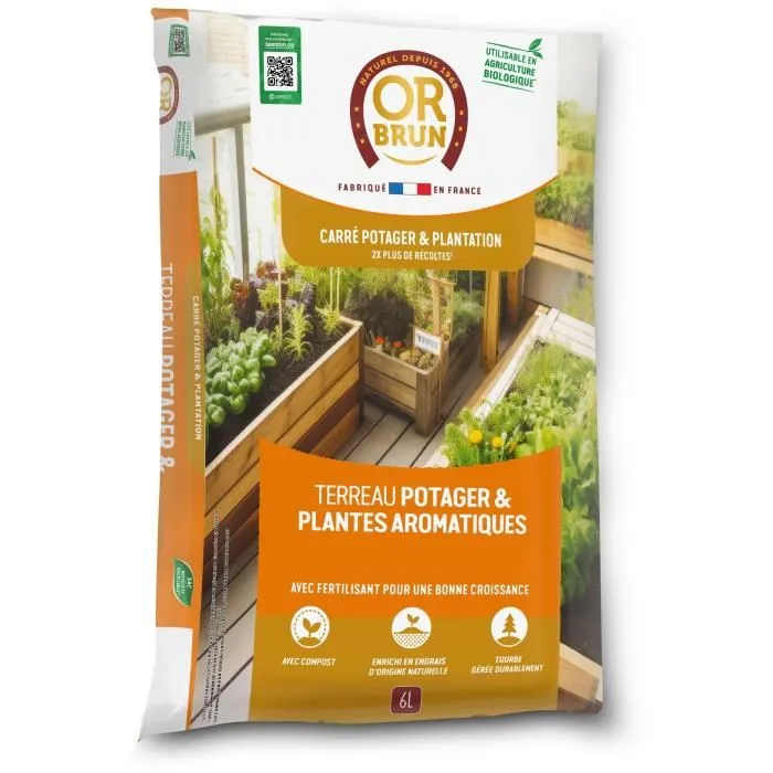 Tierra para hortalizas y plantas aromáticas - OR BRUN - OBRTARO6U - 6L - Crecimiento rápido