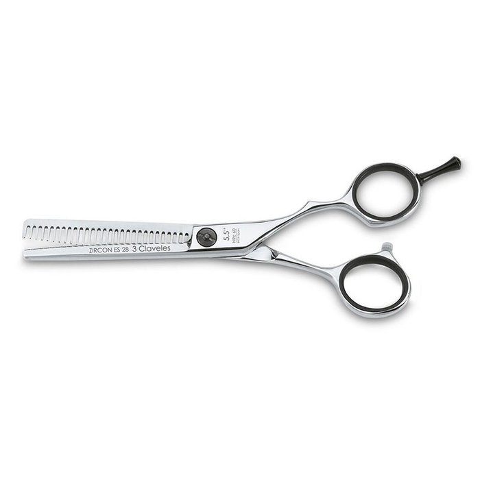 Zircon es una tijera de peluquería de corte 3 Claveles con filo de navaja, para técnicas de corte de cabello avanzadas.