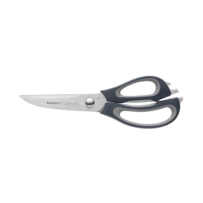 - Tijeras de cocina con cuchillas de acero inoxidable con acabado satinado.