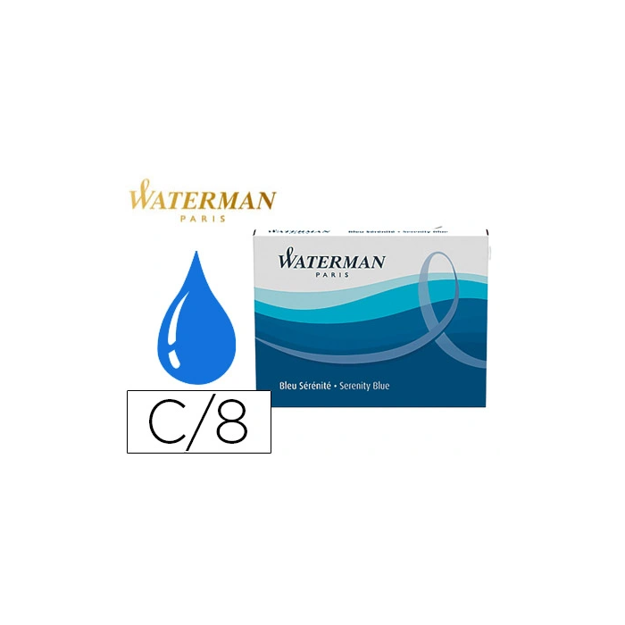 Waterman Cartuchos Tinta Estilografica Standard Largos Serenity Blue Caja de 8 Unidades