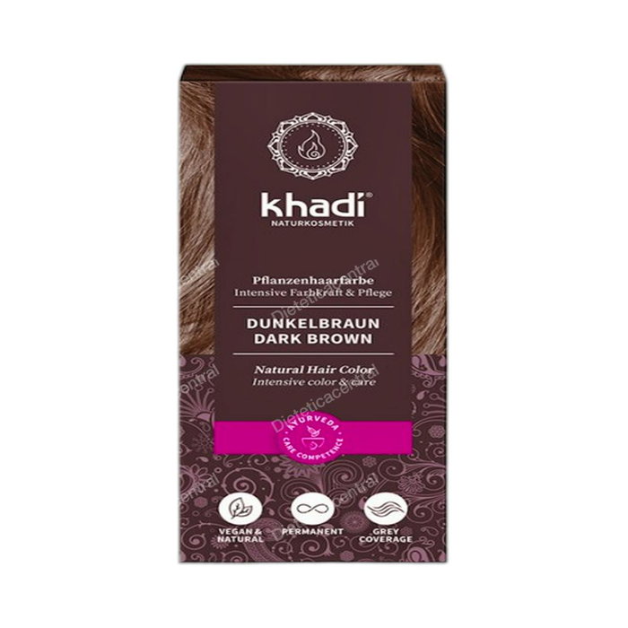 Indicaciones: Tinte ayurveda ecológico con Henna e índigo que proporciona un tono castaño oscuro natural al cabello. Sin amoníaco, agua oxigenada, resorcinol ni colorantes artificiales. Sin PPD, parabenes ni perfumes sintéticos. 100% vegetal. Apto para veganos.