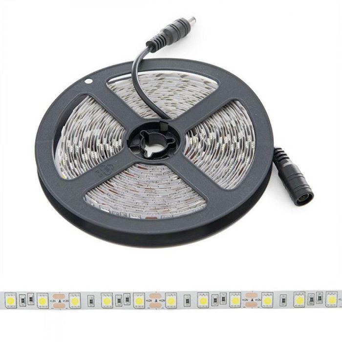 La Tira de LEDs se integra con el mínimo impacto visual en todo tipo de proyectos, consiguiendo una iluminación de efecto. Su línea extraplana y su fácil instalación la hace ideal para pasillos, vitrinas, estanterías. Las tiras SMD5050 son de alta potencia y brillo. También son conocidas como tiras de tiple núcleo (por las tres diferentes áreas que se pueden identificar al mirar de cerca el LED). Cabe destacar que la tira LED SMD5050 puede ofrecer una intensidad de luz 3 veces mayor a la de la tira SMD3528, por lo que la tira LEDSMD5050 es más adecuada para áreas que requieran mayores niveles de luz ambiental. Instalación: Tira de LED Flexible dispone en el dorso de un potente adhesivo 3M para una instalación muy sencilla en cualquier superficie (previamente limpia para que se pegue bien). La tira es extremadamente flexible y se puede utilizar en curvas estrechas. La fuente de alimentación puede soldarse a la tira LED directamente. Para la instalación de una tira LED necesitarás: Un controlador, una fuente de alimentación ya sea interior o exterior. Además dispone de accesorios para conectar y empalmar tiras LED, en el caso de querer juntar más de 8 metros de tira LED necesitarás un amplificador. Se recomienda no sobrepasar los 8 metros de longitud de tira LED si sólo se dispone de una fuente de alimentación, ya que pierde intensidad. En el caso de que sea necesario más longitud, hará falta un amplificador y una fuente de alimentación cada 8 metros para así evitar que la instalación pierda intensidad. Ideal para: Alumbrar bajo estante Resaltar contornos de objetos, paredes, techos, etc. Dar luz indirecta en espacios cerrados. Contornear espacios circulares y cuadrados. Iluminación de vitrinas, estanterías, pasillos y escaparates