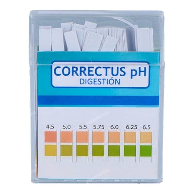 Posologia: El test es rápido, cómodo y fiable. Se realiza en 2 segundos, situando la tira reactiva sobre la lengua e impregnándola de saliva. Ayuda a comprobar si el pH es ácido (<7.0) a alcalino (>7.3).