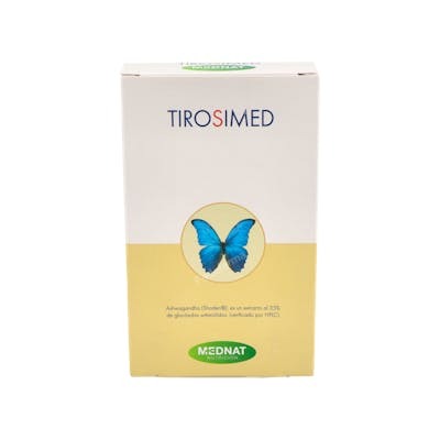 Indicaciones: Suplemento con L-tirosina, un aminoácido precursor de las hormonas de la tiroides, de las catecolaminas y de la melanina y otros nutrientes que contribuyen a una normal función tiroidea. Tirosimed es un complemento nutricional formulado por la marca Mednat. Este complemento se compone de una mezcla única de L-Tirosina, minerales y vitaminas, que combinados ofrecen una amplia gama de propiedades y beneficios para dar apoyo al normal desempeño del organismo. En particular, la L-Tirosina es un aminoácido esencial que forma parte del sistema nervioso y que se encuentra en altas concentraciones en el cerebro. La Tirosina es un precursor de la dopamina y la noradrenalina, dos neurotransmisores que ayudan a regular el normal estado de ánimo, el estrés y la ansiedad. Además de la Tirosina, Tirosimed Mednat contiene Magnesio, un mineral esencial que juega un papel fundamental en la producción de ATP mitocondrial, lo que promueve la normal formación de energía en el cuerpo. También contiene Ashwagandha Shoden, un extracto natural que ha sido utilizado durante siglos en la medicina Ayurvédica para ayudar a moderar los efectos del estrés ocasional y apoyar la normal función cognitiva. Otro componente importante de Tirosimed es la Coenzima Q10, una molécula que produce energía y puede servir de apoyo a la normal función del sistema inmunitario. La presencia de Selenio, un oligoelemento esencial que actúa en el metabolismo y tiene una función antioxidante, también es un elemento clave en esta fórmula. El Zinc es otro mineral vital presente en Tirosimed, que puede tener un efecto positivo en el normal desarrollo del cabello, la piel y las uñas. Las vitaminas del grupo B, especialmente la Vitamina B12, también están presentes en esta fórmula para ayudar a la normal producción de energía y apoyar el normal funcionamiento del sistema nervioso. Finalmente, los niveles normales de Vitamina D también se correlacionan con la normal función inmunológica.