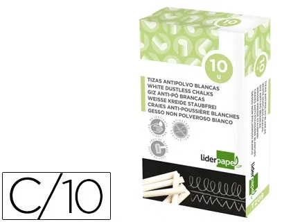 Para pizarras. Tiza redonda antipolvo. No mancha. Trazado y escritura suave. Fácil de borrar. Hipoalergénica. Certificada nueva fórmula.