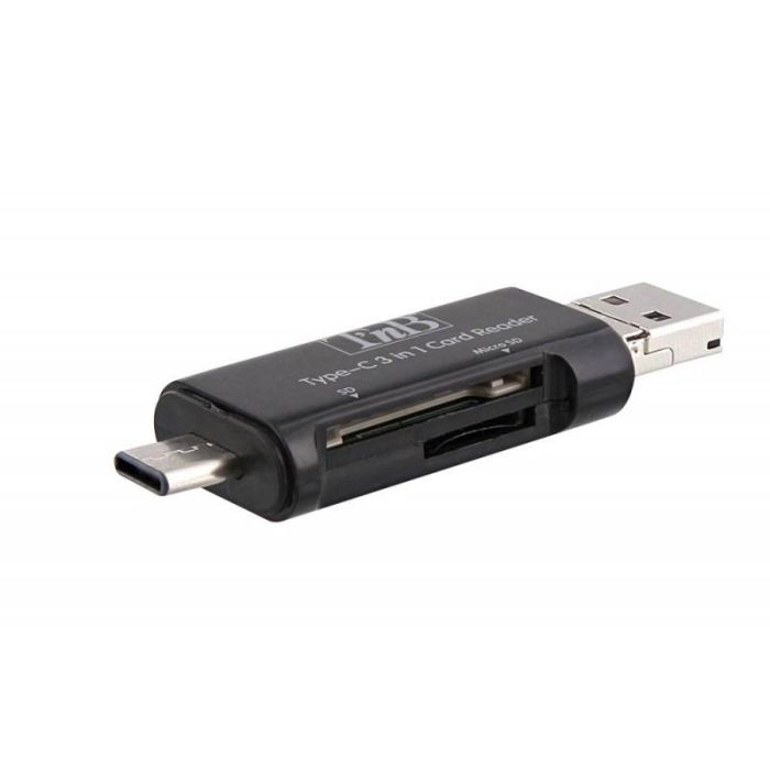 TNB Lector de tarjetas SD y micro SD 3 en 1 pocket memory card reader (SD / micro SD) - Compatible with all devices : USB-C / USB / Micro USB - Black