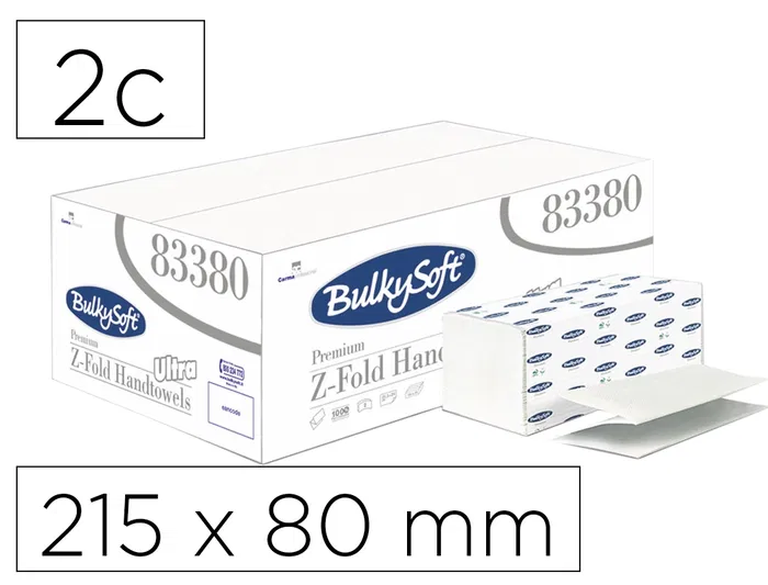 Ofyhostel Toalla Engarzada Bulkysoft Premium Fold Gofrada 2 Capas Plegado Z 215 x 80 mm Papel Secamanos