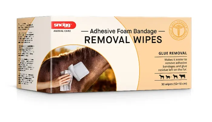 Toallitas Retirada Vendaje de 24 x 30 mm. Paquete con 30 unidades. Marca: Snogg. Ideal para la eliminación suave e higiénica de vendajes y apósitos adhesivos.