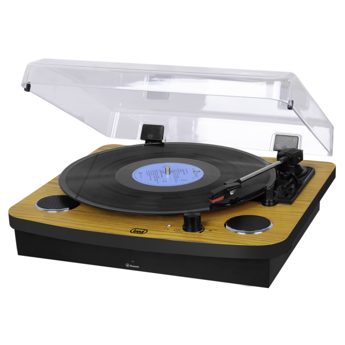 Trevi TT 1022 BT Tocadiscos de Tracción Directa Negro, Madera con Bluetooth y 2 Altavoces Integrados 6W
