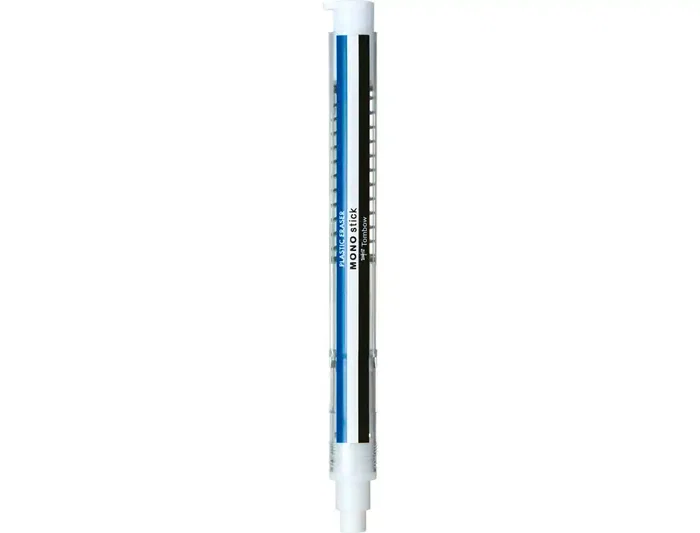 Tombow MONO Stick Borrador Portaminas de Precisión Recargable, Punta de Goma 6.7 mm, Carcasa Transparente, Cuerpo Blanco Azul Negro, Ideal para Dibujo y Oficina