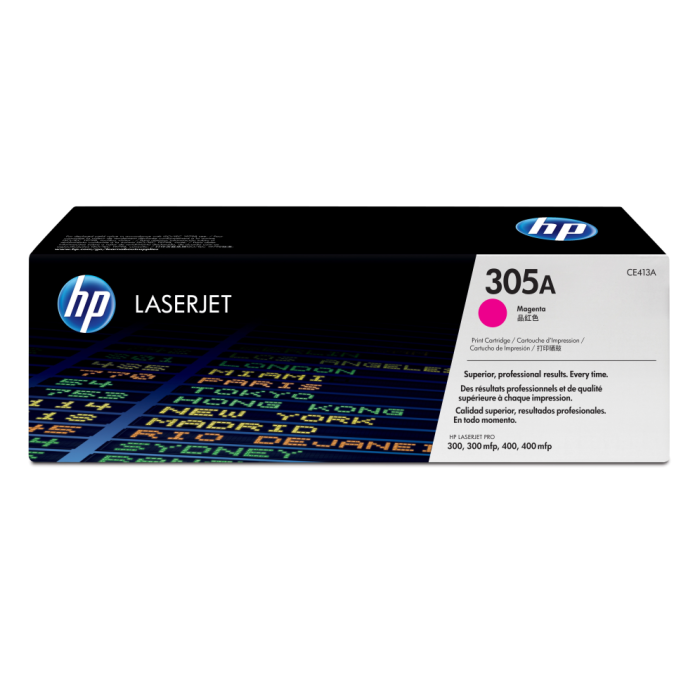 Los cartuchos de impresión magenta HP 305A LaserJet hacen que los documentos y materiales de marketing tengan un aspecto profesional. Mantenga la productividad evitando perder tiempo y consumibles. Estos cartuchos han sido diseñados especialmente para su impresora HP LaserJet Pro.