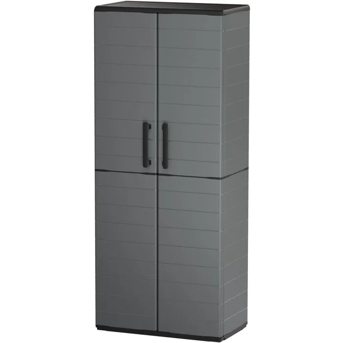 TOOD - Armario Alto 2 Puertas, 3 Estantes Polipropileno, 163 cm Alto, Gris, 68x37x163 cm