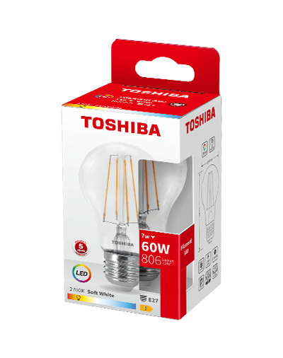Descubre la bombilla LED de filamento TOSHIBA A60 E27, de 7W y 2700K. Esta bombilla LED combina el diseño clásico del filamento con la eficiencia y larga duración de la tecnología LED. Fabricada por la reconocida marca TOSHIBA, ofrece una luz cálida y acogedora de 2700K, ideal para crear ambientes confortables en el hogar. Su casquillo estándar E27 la hace compatible con la mayoría de portalámparas. Consume solo 7W, proporcionando un importante ahorro energético en comparación con las bombillas tradicionales. El modelo A60 es perfecto para iluminar lámparas de mesa, lámparas de pie, apliques o cualquier luminaria con casquillo E27 que requiera una luz cálida y de bajo consumo.