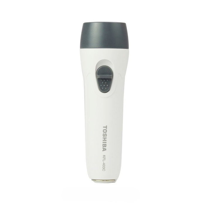 Linterna LED Toshiba en color blanco, presentada en blister para una mejor protección y visualización del producto. Fabricada por la reconocida marca Toshiba, esta linterna ofrece iluminación eficiente y confiable gracias a su tecnología LED, siendo ideal para uso en diversas situaciones como camping, emergencias o tareas que requieran una fuente de luz portátil y duradera. Su diseño compacto y práctico facilita el transporte y el manejo.