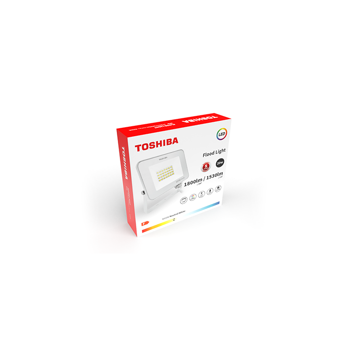 Este proyector emite una luz blanca brillante de 6500 K, perfecta para iluminación general, de seguridad o para resaltar elementos arquitectónicos. Su construcción robusta y el acabado en blanco lo integran fácilmente en cualquier entorno exterior. La marca Toshiba asegura calidad, durabilidad y un rendimiento fiable.