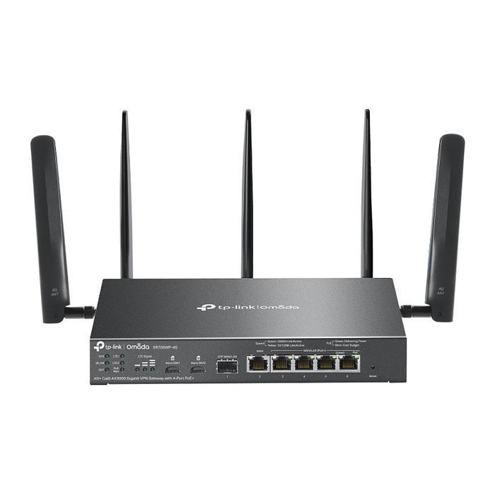 TP-Link ER706WP-4G, Doble banda (2,4 GHz / 5 GHz), Ethernet, 4G, Negro, Enrutador de escritorio/poste