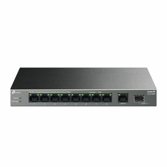 TP-Link LS1210GP Switch Gigabit 10 Puertos (8x PoE+ 61W, Puerto SFP, Extensión PoE 250m, Aislamiento, Silencioso)