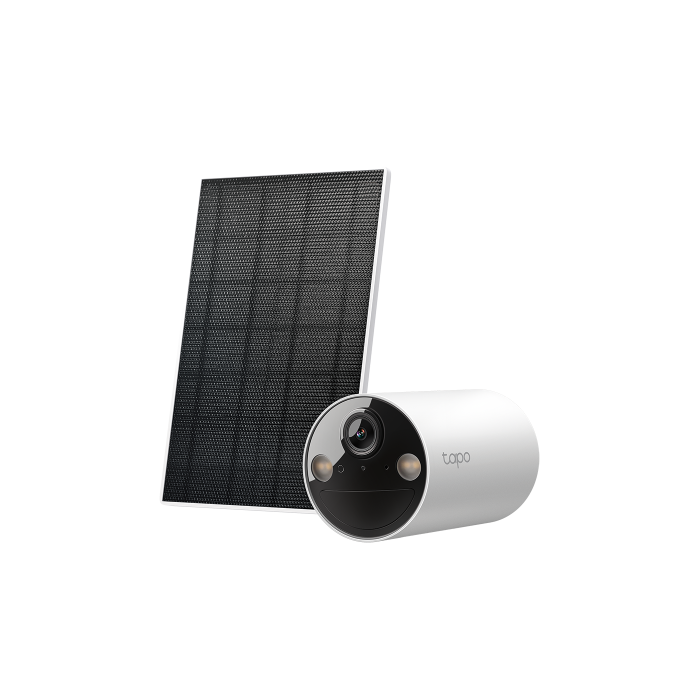 TP-Link Kit Cámara de Seguridad WiFi Exterior Tapo TC82 con Panel Solar A201, 2K 3MP, Batería 6400 mAh, Visión Nocturna Color, IP65, IA Personas/Mascotas, SD/Nube