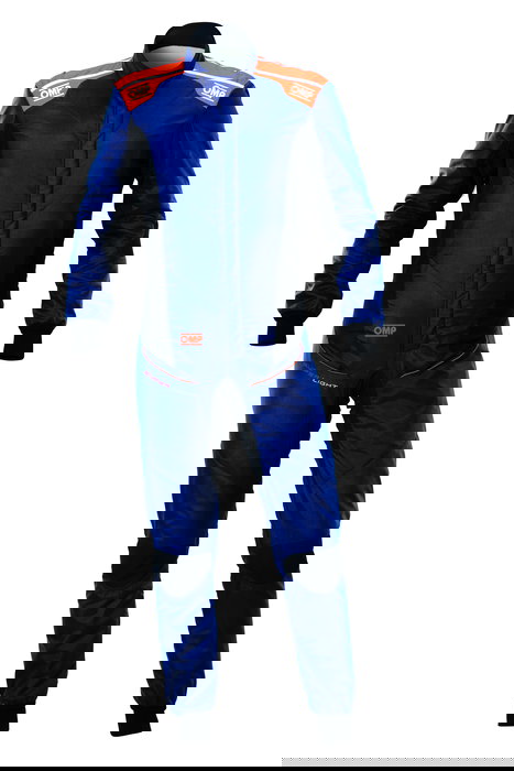 Omp OMPIA0-1870-A01-249-56 Traje De Carreras Tecnica Super Light Ignífugo FIA 8856-2018 Azul Marino - Fluo Naranja Talla 56