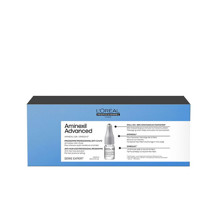 Aminexil advanced anti-hair loss professional es un programa intensivo de doble acción para el cabello afinado, enriquecido con aminexil y el complejo omega6. Aporta nutrientes esenciales que ayudan a estimular la actividad de la raíz y preservan la densidad del cabello de la raíz a las puntas.