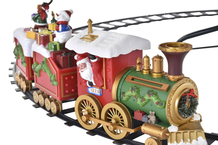 DKD Home Decor Tren Navidad Tradicional LED Multicolor Rojo 136 x 15 x 136 cm Movimiento Musical (2 Unidades)