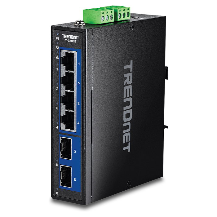 TRENDnet TI-G5062 Switch Industrial para Carril DIN de 6 Puertos, 4x 2.5G Ethernet y 2 Puertos SFP+ 10G, No Administrado, IP50, -40 a 75°C