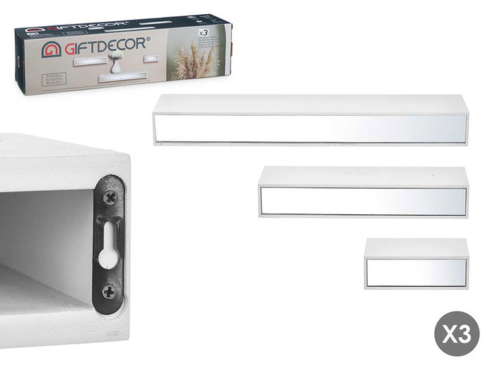 Giftdecor Tres Estantes Espejo 15 30 45 cm Blanco (Set de 4)