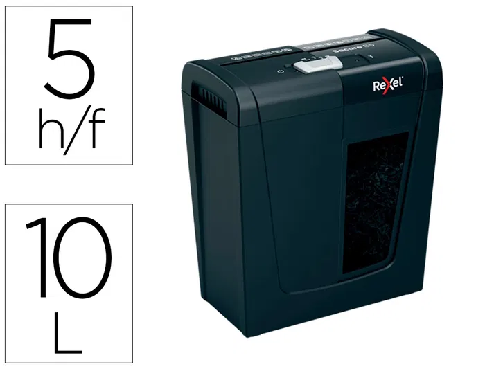 Rexel Secure S5 Destructora de Documentos, Capacidad 5 Hojas, Grapas, Clips, Tarjetas y CD, Papelera 10 L, Corte en Tira