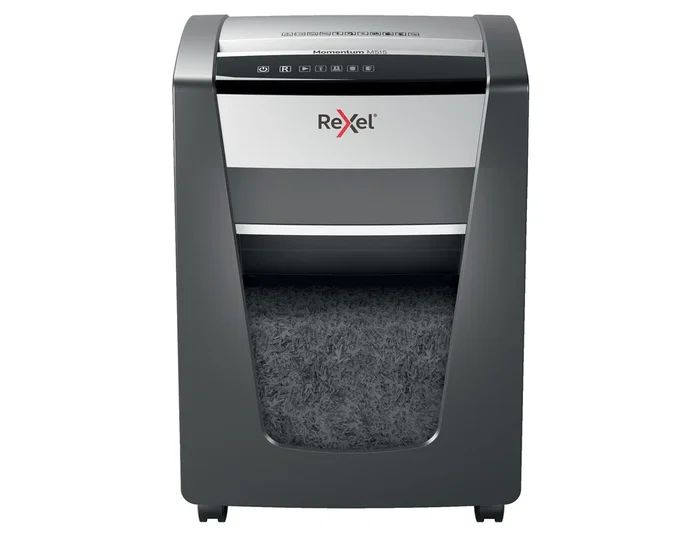 Destructora de papel Rexel Momentum M515. ¡La potencia para destruir más! La destructora de papel Rexel Momentum M515 destruye hasta 15 hojas de una vez, funciona ininterrumpidamente durante 4 horas y es ideal para oficinas pequeñas. La tecnología antiatasco del modelo M515 garantiza el funcionamiento ininterrumpido. P5, corte en partículas de 2 x 15 mm para mayor seguridad y máximo aprovechamiento de la papelera. Trituradora silenciosa con botones táctiles sencillos e intuitivos y una generosa papelera de 30 litros de capacidad (300 hojas A4).