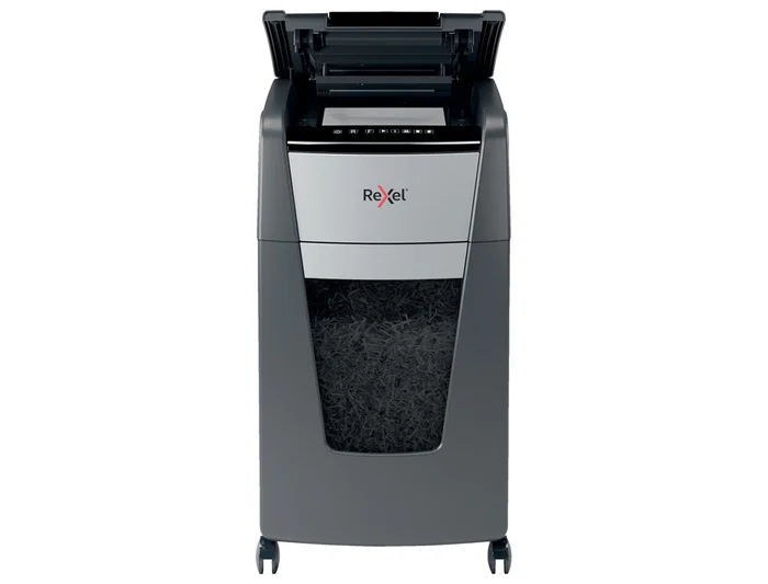Destructora automática Rexel Optimum AutoFeed 225M de microcorte. La destructora de microcorte Optimum AutoFeed 225M tritura automáticamente hasta 225 hojas de papel A4 (80 gr.) a la vez, en micro partículas P-5 (2x15 mm). Esta destructora de alimentación automática es una trituradora de oficina sofisticada, con una papelera extraíble de 60 litros. No es necesario alimentar manualmente el papel, ni quitar grapas y clips de papel primero, esta destructora de papel automática hará todo el trabajo por ti.