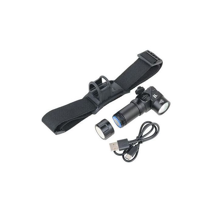 TROIKA ECO KNICKLICHT MICRO Linterna Frontal y de Mano LED Recargable USB, 5 Modos Luz Blanca y Roja, Negro, Aluminio