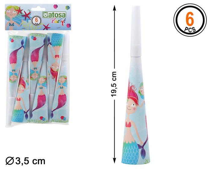 Set 6 cornetas de carton sirenas del mar 3,5 cm diámetro