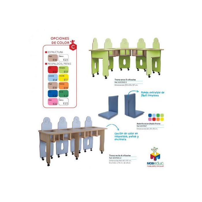 Mobeduc Trona Arco 600565.5H196 para 5 Niños/as, Mesa Infantil con Asientos, Estructura de Madera MDF, Encimera HPL, 200x65x107 cm